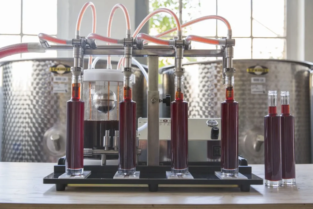 Die Maische der Quitten von der kleinen Quittenplantage in Machern reifte einige Monate zusammen mit dem Grundalkohol im Tank. Unter Zugabe des Roh-Rohrzuckers entstand ein Likör mit feinem Quittenaroma, der schon zahlreiche Liebhaber*innen gefunden hat.